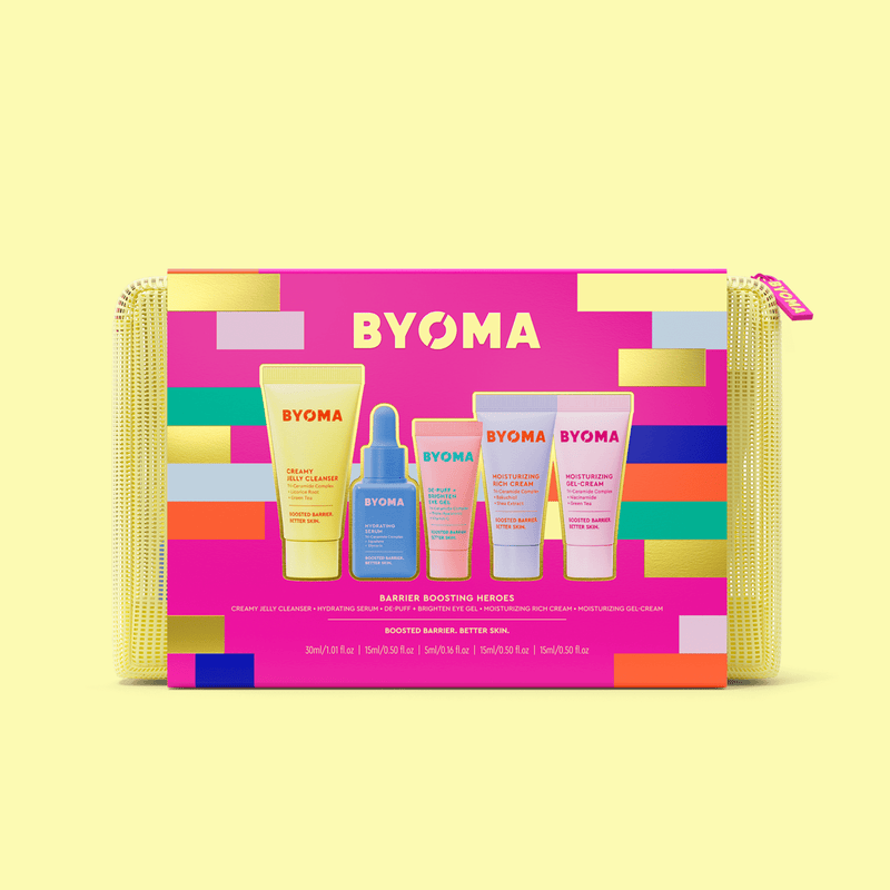 Meet our Dermatologist Approved, barrier boosting heroes!Driven by science, powered by ceramides to Boost, Build, Balance, Brighten + Strengthen your skin barrier.Your best skin starts with BYOMA.