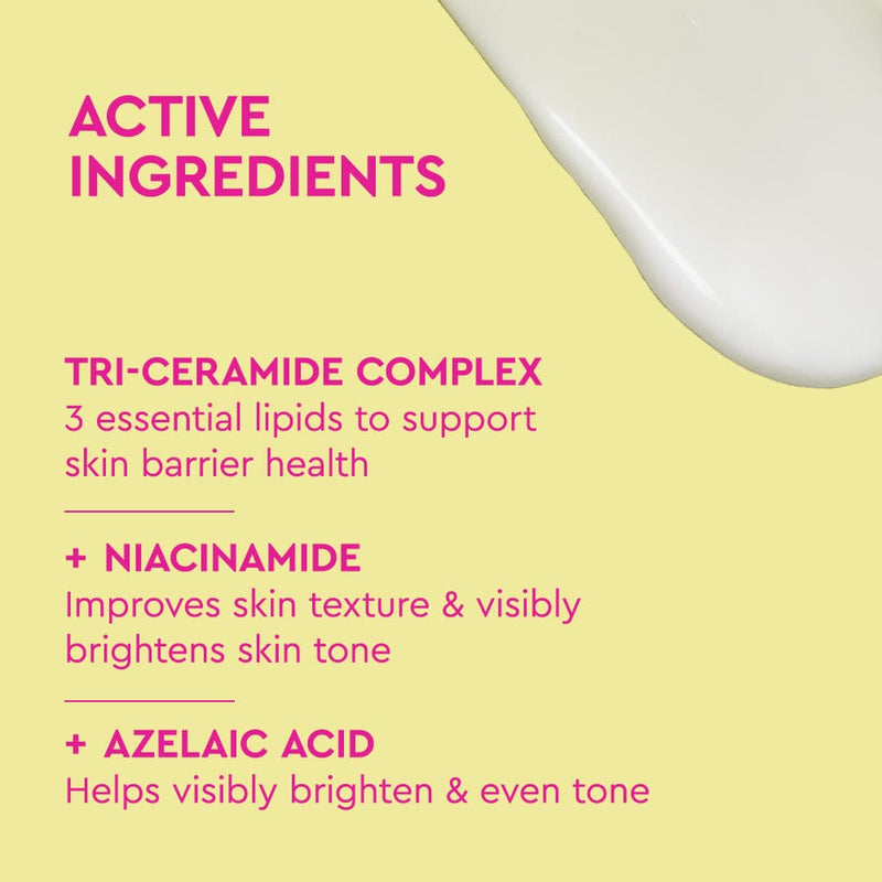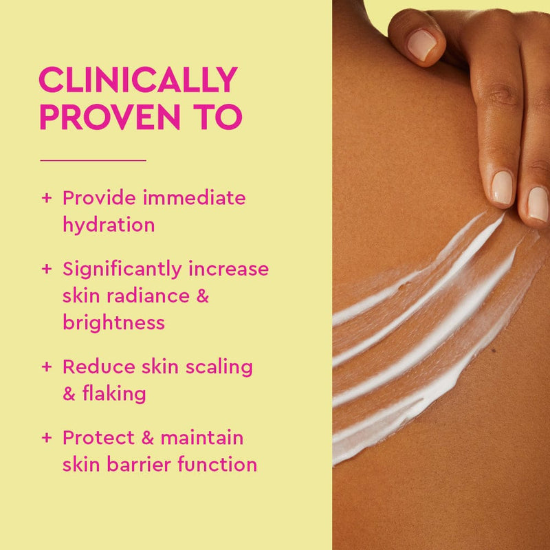 This lightweight, silky soft body lotion gently exfoliates to improve skin’s overall appearance, without disrupting skin barrier function.The illuminating formula works to brighten the skin, provide immediate hydration while supporting skin barrier function.Featuring our Tri-Ceramide Complex and a blend of skin-loving Urea and Niacinamide this clinically proven body lotion will visibly brighten skin, even tone and texture while effectively hydrating and replenishing moisture levels daily.Dermatologist tested and approved, alcohol free, vegan and cruelty free.