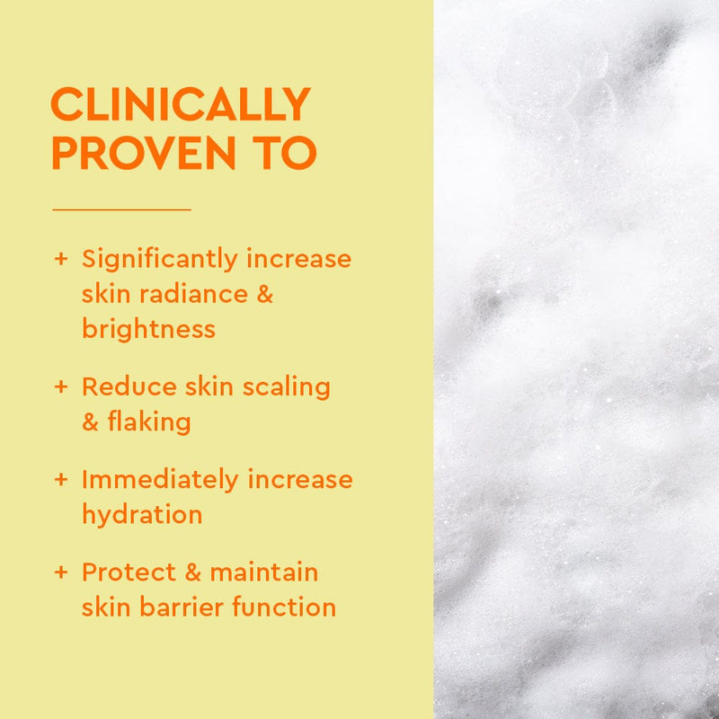This radiance-enhancing, pH balanced body cleanser diminishes dullness to deliver noticeable brightening benefits.The rich texture transforms into a luxurious lather that works to effectively cleanse without stripping the skin of essential moisture.With our prebiotic complex, Niacinamide and Azelaic Acid, the clinically proven formula improves the appearance of uneven skin tone and texture for glowing results while supporting the microbiome in-shower and works to maintain skin barrier health from first use.Dermatologist tested and approved, vegan and cruelty free.