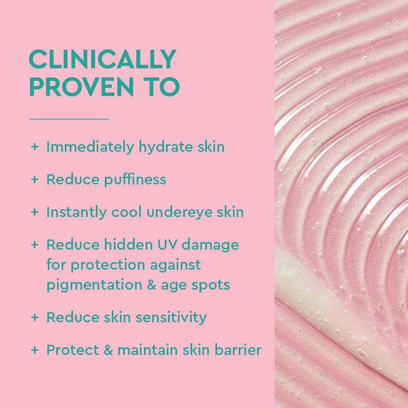 This targeted eye treatment is a hybrid gel-serum that will help to calm and brighten the delicate undereye area while also helping to reduce the appearance of dark circles and puffiness.Formulated to deliver visible results instantly and over time, it’s infused with our Tri-Ceramide Complex, Triple Hyaluronic Acid and Vitamin C , the clinically proven formula instantly cools and hydrates across multiple layers of the skin, with a noticeable reduction in puffiness all while protecting the skin barrier.Dermatologist tested and approved, non-comedogenic, alcohol and fragrance-free, vegan and cruelty free.